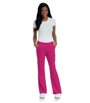 Looking professional has never been so comfy. Soft modern elasticized waist with hidden drawstring for a natural fit. Relaxed fit through the hip, seat, and thigh. Two curved topstitched inset pockets. Flare leg with vents. Tagless for even greater comfort.
