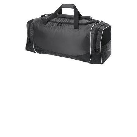 Sized to fit your activity level and lifestyle, our Rival Duffel features an edgy tonal graphic print and contrast piping for a truly sporty look. | 100% polyester diamond texture with printed panel detail Zippered end pockets with mesh for ventilation Interior zippered pocket for small items Fabric-wrapped handle Detachable, adjustable, padded shoulder strap Removable bottom board for reinforcement Dimensions: 12'h x 29'w x 12'd; Approx. 4,176 cubic inches Note: Bags not intended for use by children 12 and under. Includes a California Prop 65 and social responsibility hangtag .
