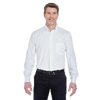 4.7 oz. 55% cotton, 45% polyester twill; Peached finish; Button-down collar; Dyed-to-match buttons; Left chest pocket;